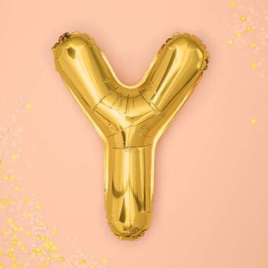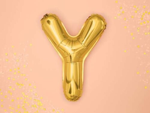 Balon foliowy metalizowany Litera Y w kolorze złotym, wysokość po napompowaniu ok. 35 cm (14”).