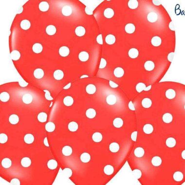 Gumowy balon w czerwonym kolorze w białe kropki. Balon na imprezy. Rozmiar 30 cm.