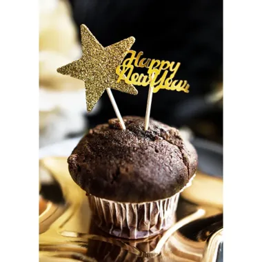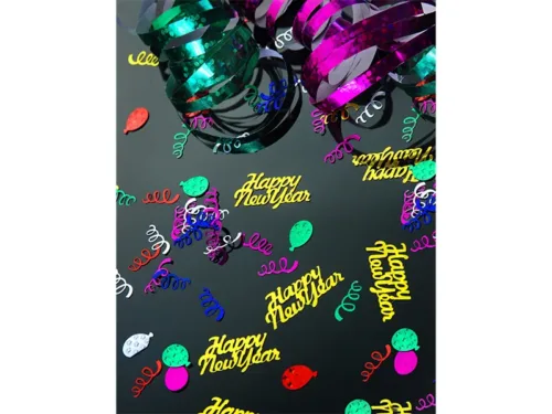 Konfetti metalizowane Happy New Year w kolorze złotym, wymiary 4x2cm.